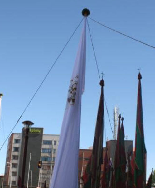The record was carried out on a Tuesday afternoon; this enlarged the difficulty of the achievement since most of the people were working at that time. Besides the banners (similar traditional elements to the flags and characteristic of the towns from Leon), as well as the people that carried them, do not reside in León capital, place in which the record attempt was brought about. Some of these people had to drive over 100 km to be able to participate in the record. Even that, various Banners of the northern part of the province of Zamora also participated, the same as the Banner of the Banners the Kingdom of León Association, and the three Real Banners (Real Banner of the Council of León, Banner of the Province of León and Real Banner of Baeza-Miraculous Banner of San Isidoro).The banners paraded from two different points of the city, which remained paralyzed by slightly more than an hour, thanks to it was July, the chaos was not excessive. The Banners paraded from those two points already commented, to join and meet at the San Isidoro square, where were measured by the notary who gave faith of the height of it. Among the people who was parading with the Banners (each banner needs among four and ten people to carry out a travelled distance as the one that was carried out, since each of them weighs around twenty and sixty kilograms, depending on its the height) and the people that attended the event, the San Isidoro square got completely packed tight.The record coincided with the presence of the route Quetzal boys in León, who witnessed the record in the square. It was not too much easy to make the banners enter into the square, since the square is not especially large; furthermore the affluence of people was massive. For more than six minutes, the “Dulzaineros” , first interpreting the Banners hymn and subsequently the León hymn, prolonging it time in order to exceed the six minutes. Once they managed to exceed the record, the Banners collected their banners and proceeded, as being usual in the meetings of banners, to share an afternoon snack of pickling, bread and wine.